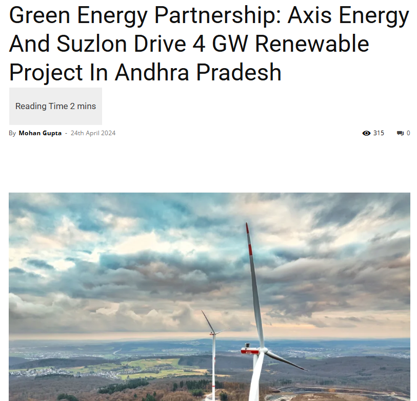 Green Energy Partnership: Axis Energy And Suzlon Drive 4 GW Renewable Project In Andhra Pradesh